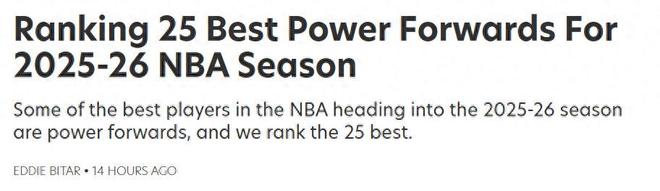 火箭队两大新星入选!美媒公布新赛季大前锋TOP25:锡安10浓眉第3