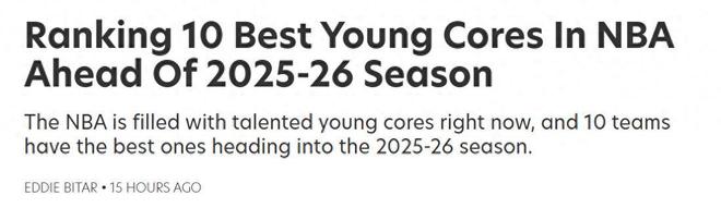 火箭队屈居第4!美媒评现役年轻核心TOP10:湖人意外入选马刺第二
